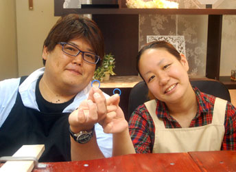 あまり派手好みではないお二人のご要望で、指輪のデザインもシンプルで細身を手作りして頂きました。シンプルながらも手作りの味のあるデザインです。ありがとうございました!