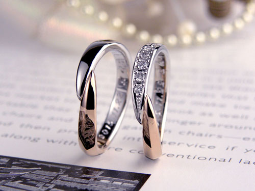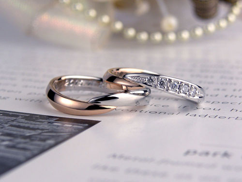 今回ご紹介のお客様は大阪府内にお住まいで、ピンクゴールドとプラチナのコンビネーションの結婚指輪を手作りしていただきました。