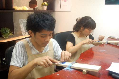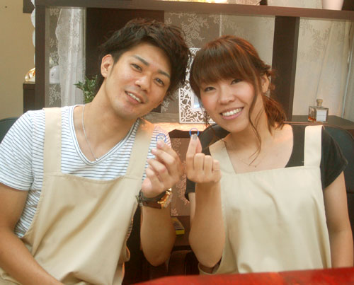 慣れない作業で最初は緊張気味でしたが無事に指輪が完成すると