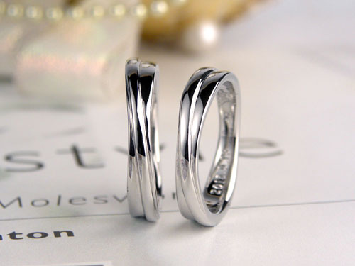 プラチナで仕上がった結婚指輪がこちらのデザインです!