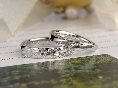 メンズはカジュアルに全周ハワイアン彫刻を施しました。