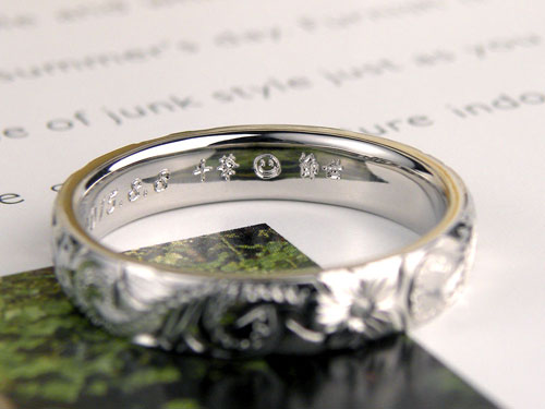 内側の彫刻は漢字でお互いの名前を刻んでいます♪