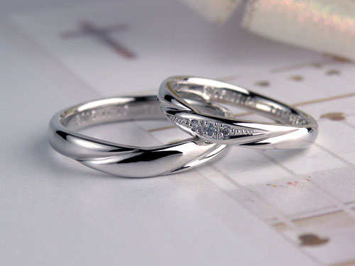 お二人が製作する指輪はV字型の形で、レディスにはダイヤモンドを埋め込んだデザインです。