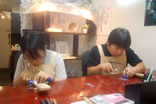 他のお客様同様に、花びら型のデザインは難しそうだなと思っておられたようですが、作り方の手順を説明すると意外と簡単に作ることがわかってこのデザインに挑戦です。