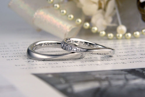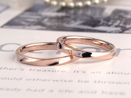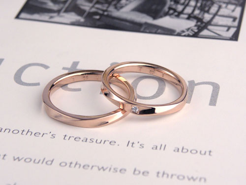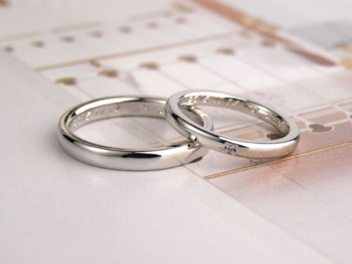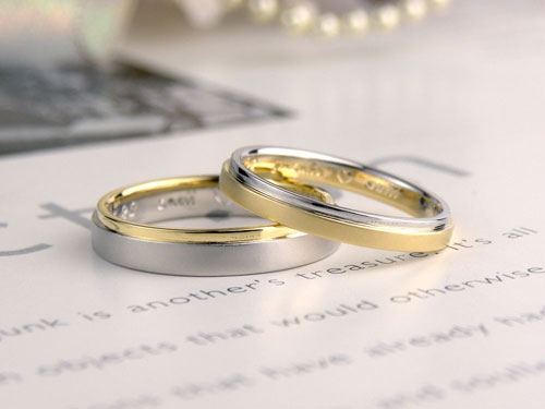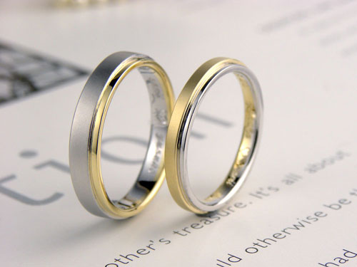 また、レディスとメンズとで表面を甲丸型と、平打ち型にそれぞれ変更した変わった組み合わせです。