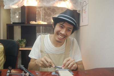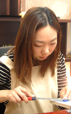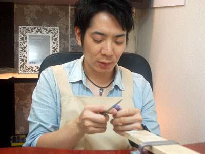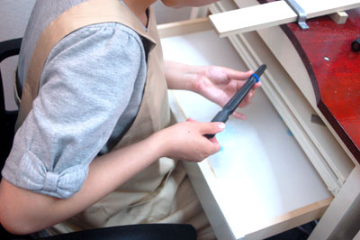 内側を削ってサイズを合わせていますが真剣なまなざしで削っています。