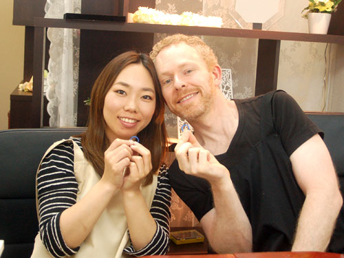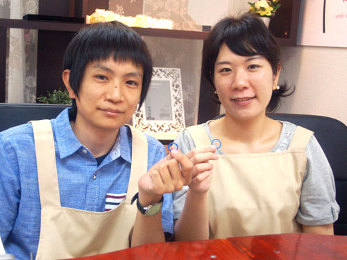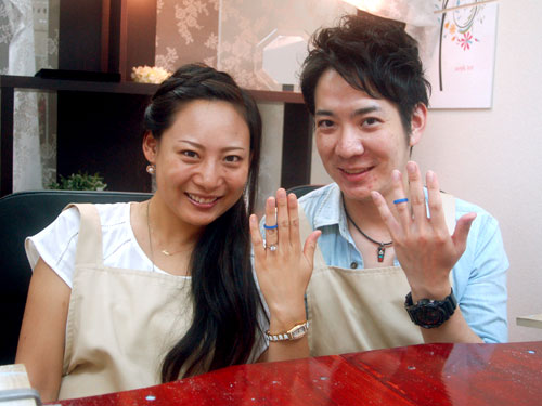 お互いに作り合いっこしていただいたので彼が彼女の指輪を、彼女が彼のサイズに合わせた指輪を作っています。